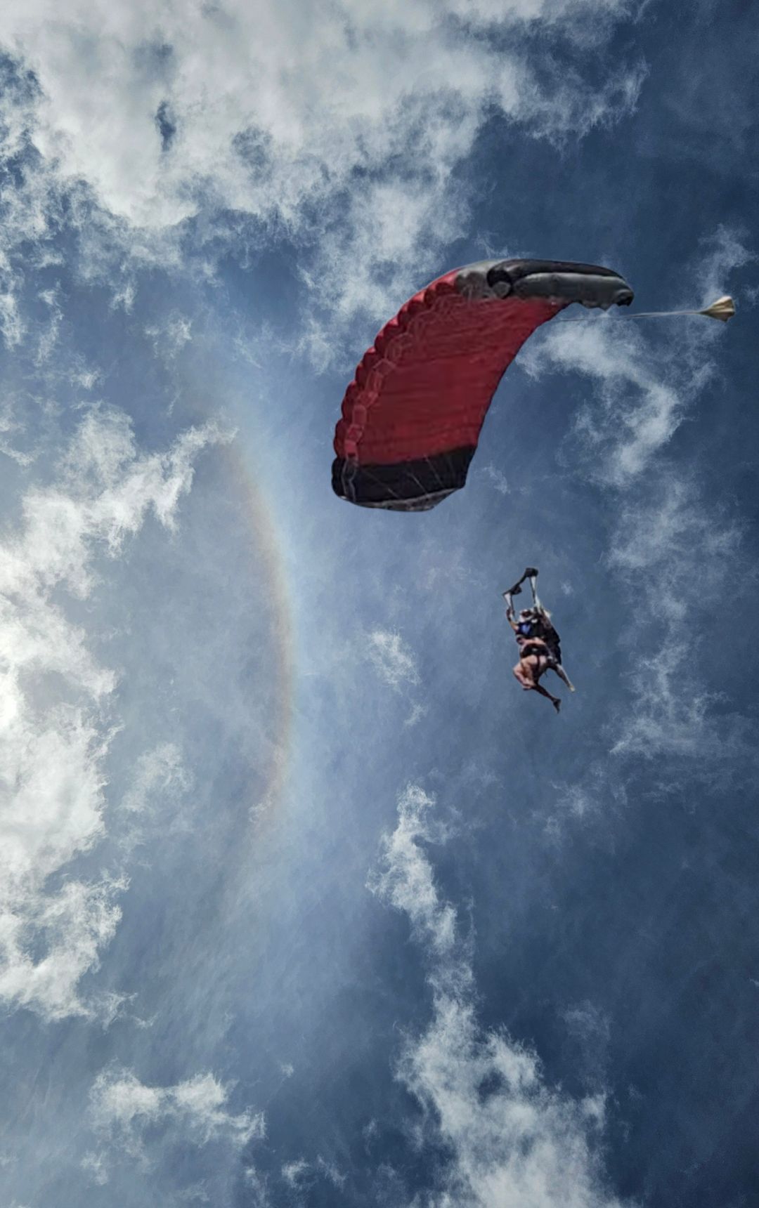 Of course, I forgot all the instructions. My eyes and body were taking everything in. We went through a cloud. The parachute opened. It felt so unreal but so beautiful.